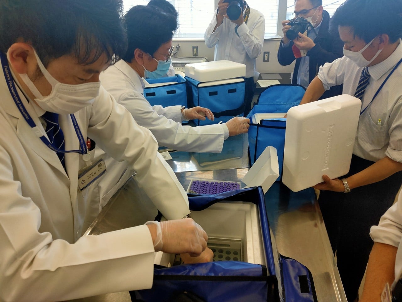 藤沢市では、他自治体同様に薬剤師会が「集団接種の希釈分注」を行う事に加えて、「ワクチン配送管理」を担います。「医薬品供給は薬剤師が行う」という原則をコロナワクチンに於いても実践します! (手前左が弊社代表の大島)