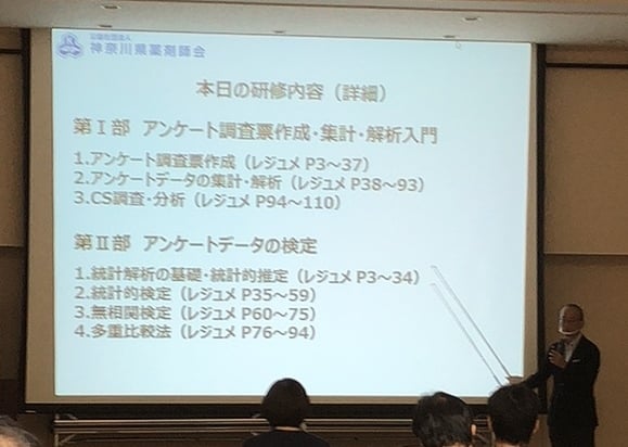 ~本日は、神奈川県薬剤師会主催の「データ解析研修会」~ 昨今、薬局薬剤師の業務について、様々なアンケート解析等の手法を用いて、「業務の見える化」に挑戦していますが、良いアンケートとは?正しい解析とは?といった研修がありませんでした。そこで、有志と共に、、本研修会を立案致しました。 丸1日の研修ですが、、、PC持参で頑張ります!! 大島崇弘