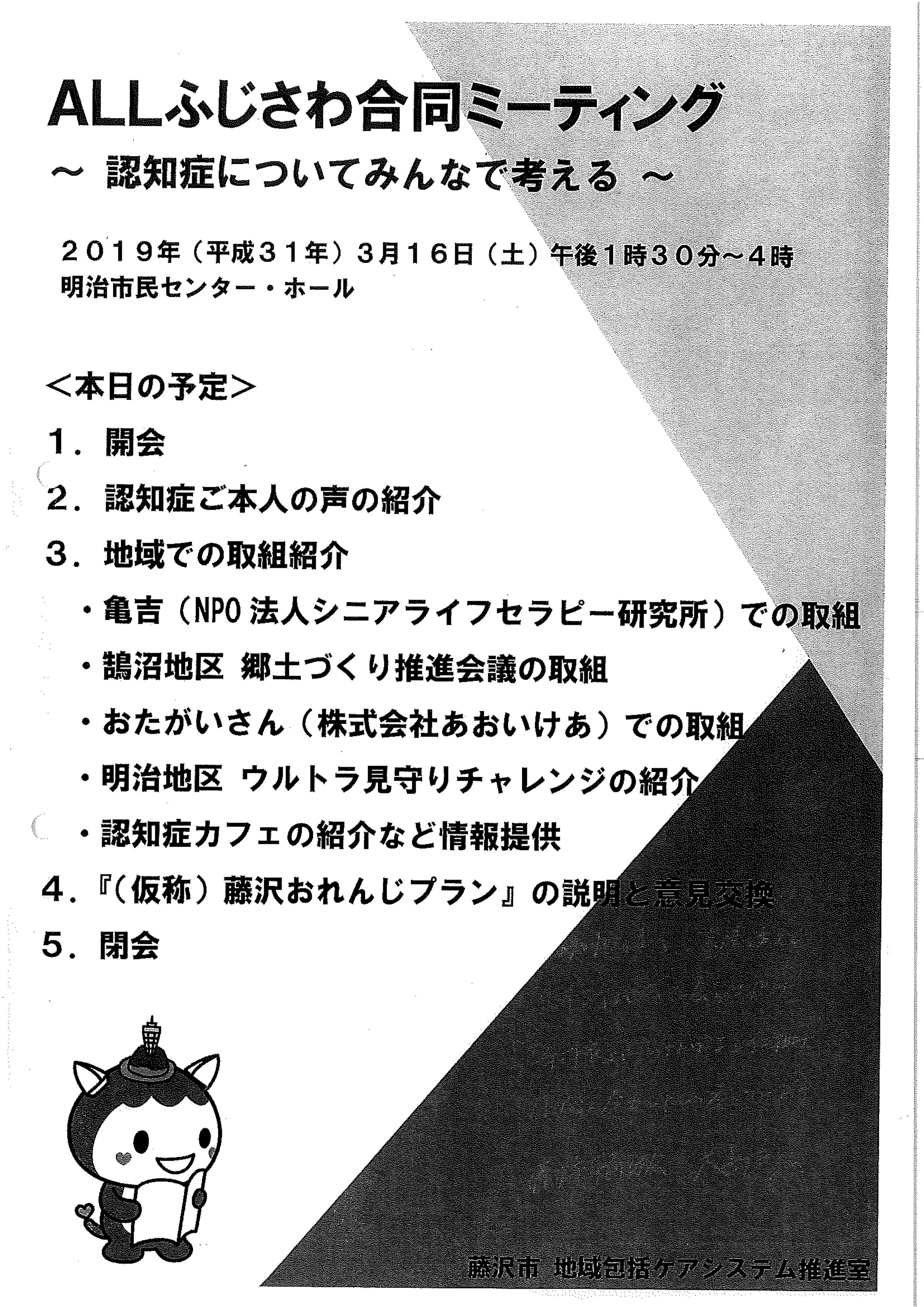 「認知症についてみんなで考える」と称してALLふじさわミーティングが開催され参加して参りました。 また、藤沢市薬剤師会として藤沢市に対して認知症における薬剤師の役割について理解を深めて頂くために提言書を提出されて頂きました。 これからの社会は、認知症について皆が理解し、協力し合える社会が必要と考えています。薬局薬剤師は、その中心でしっかりと役割を果たして参りたいと考えております。